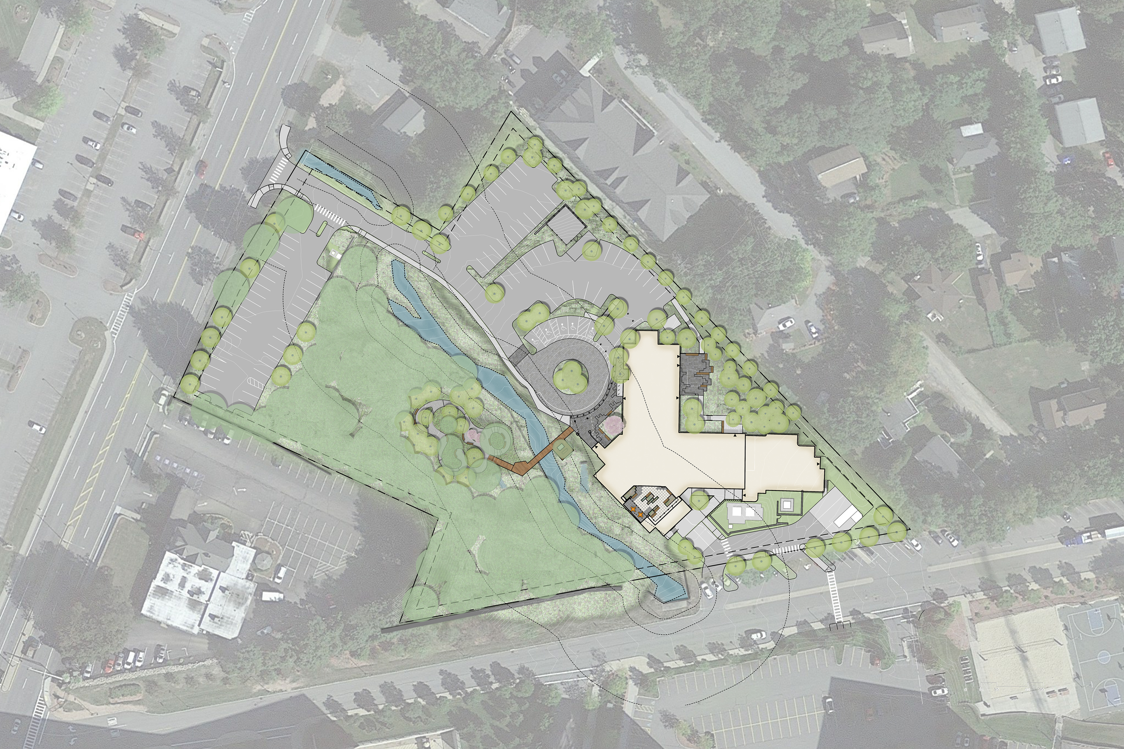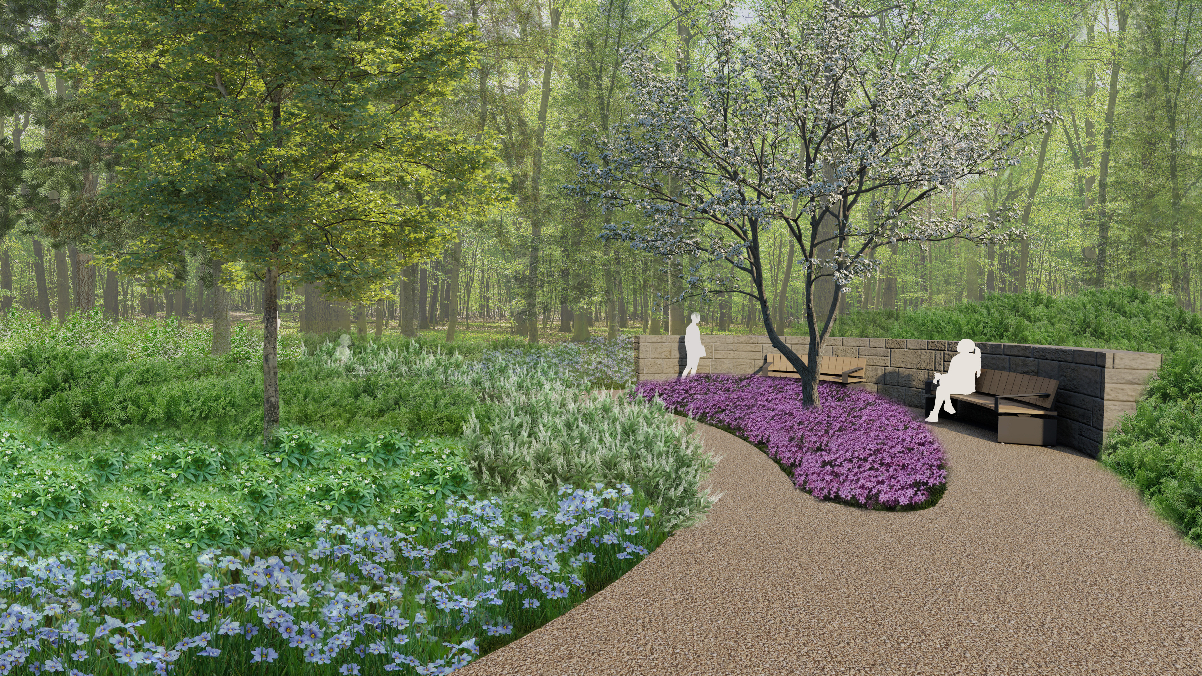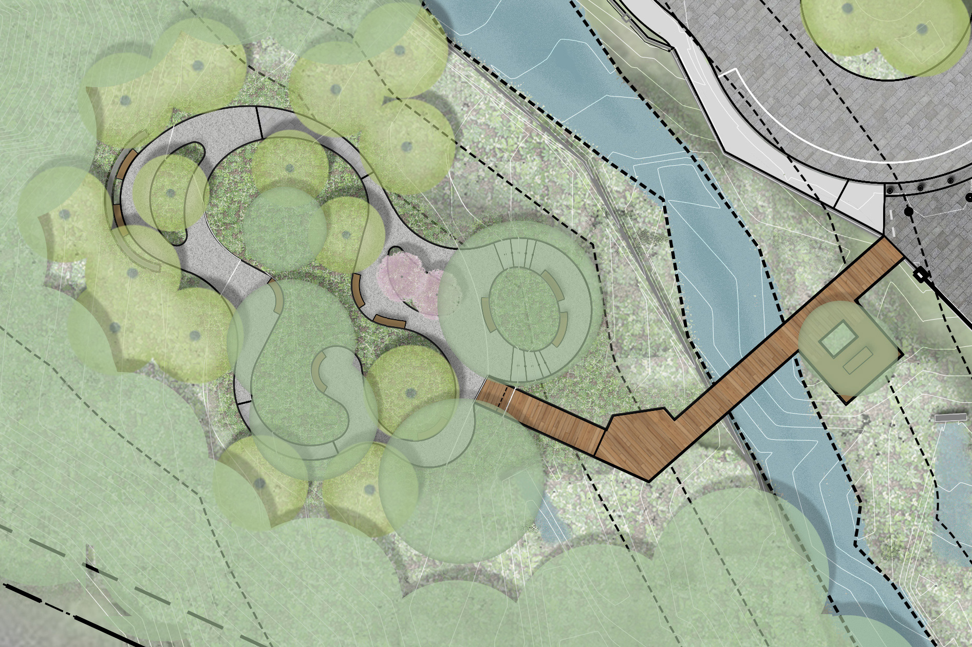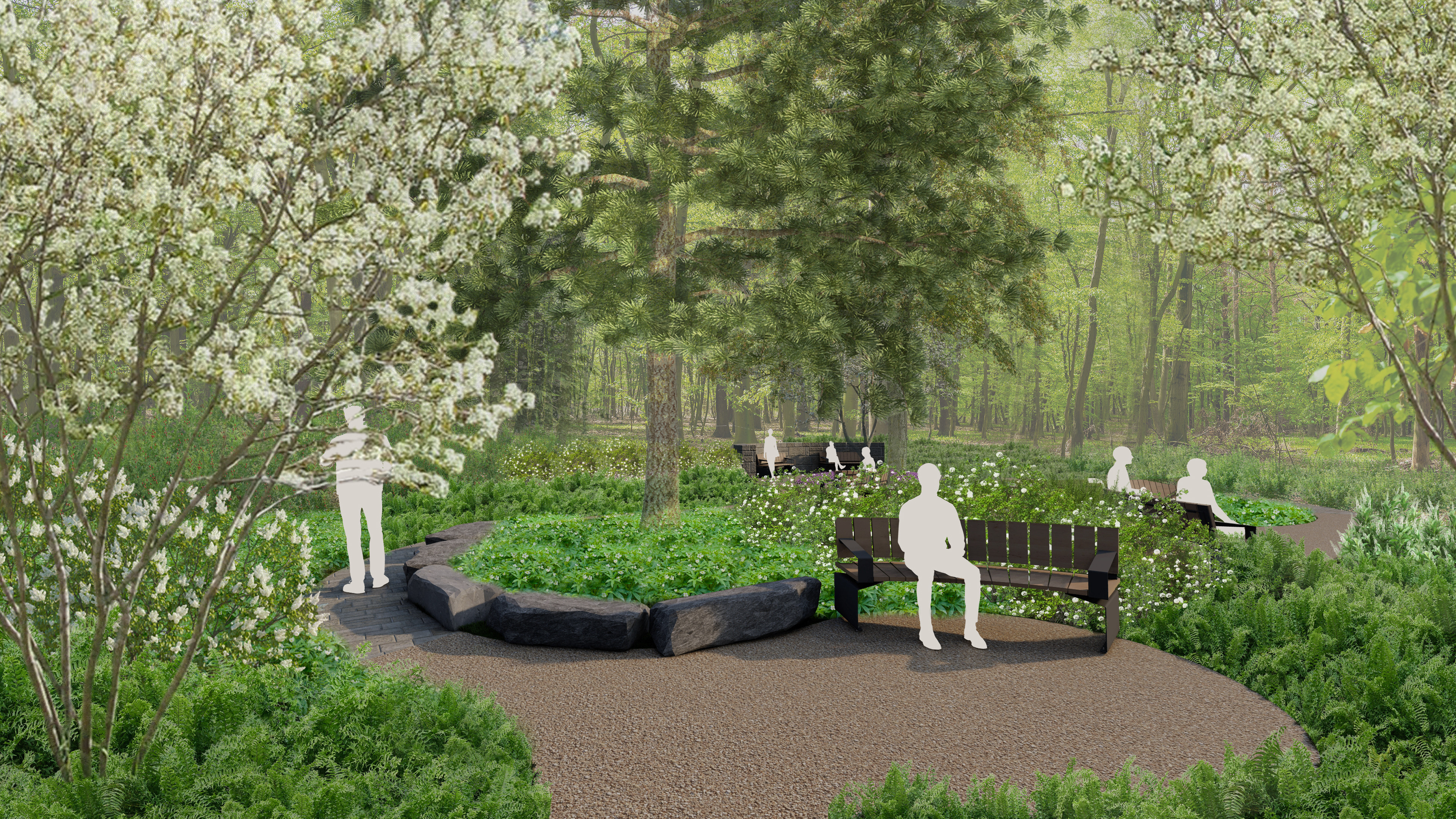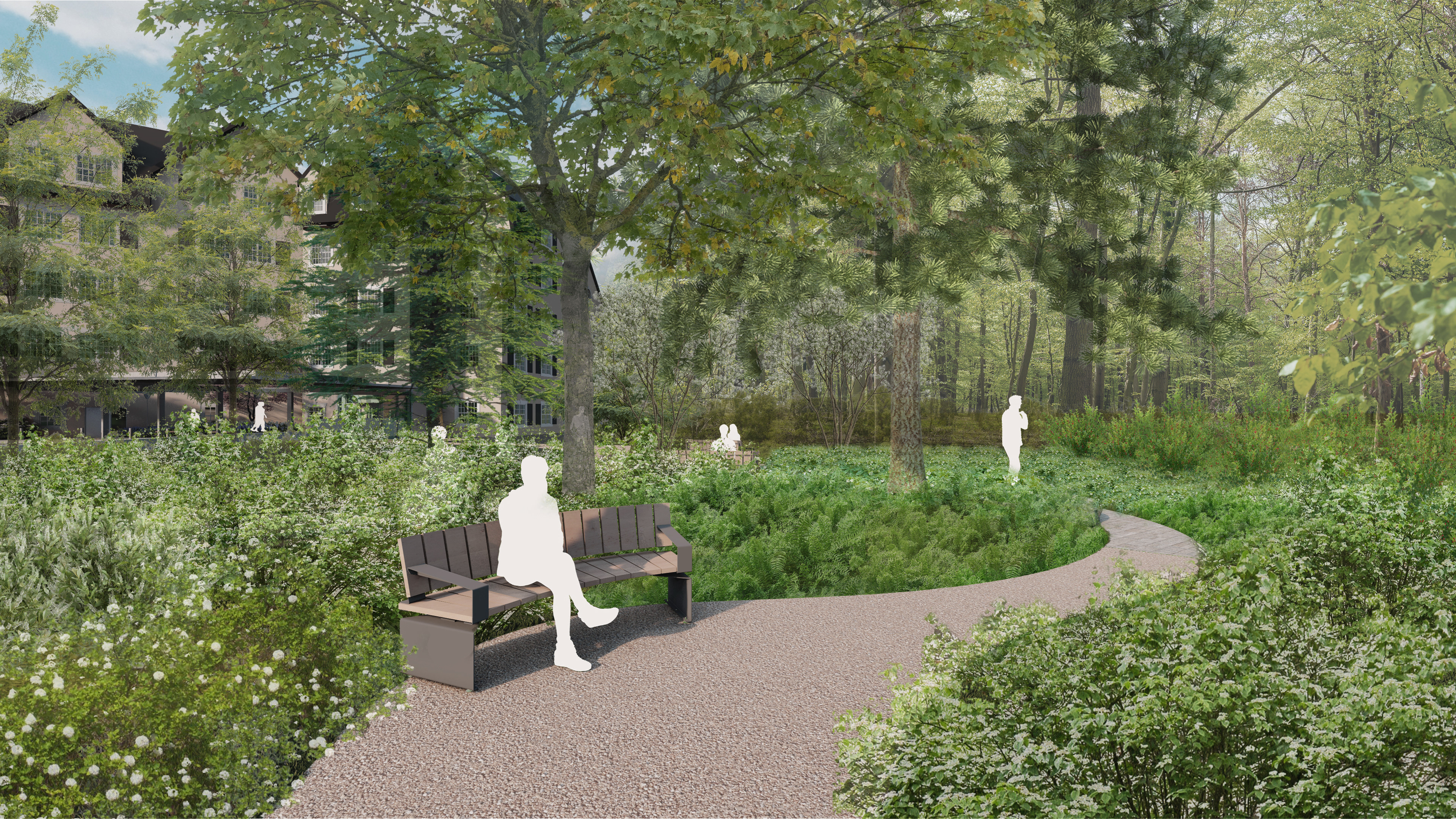 Project with Studio2112 Landscape Architects. Landscape design for new inpatient care facility in Worcester, Massachusetts. Site amenity spaces include: roof top garden, patio and seating areas, and healing garden with boardwalk access.